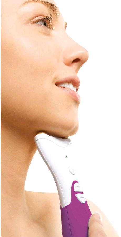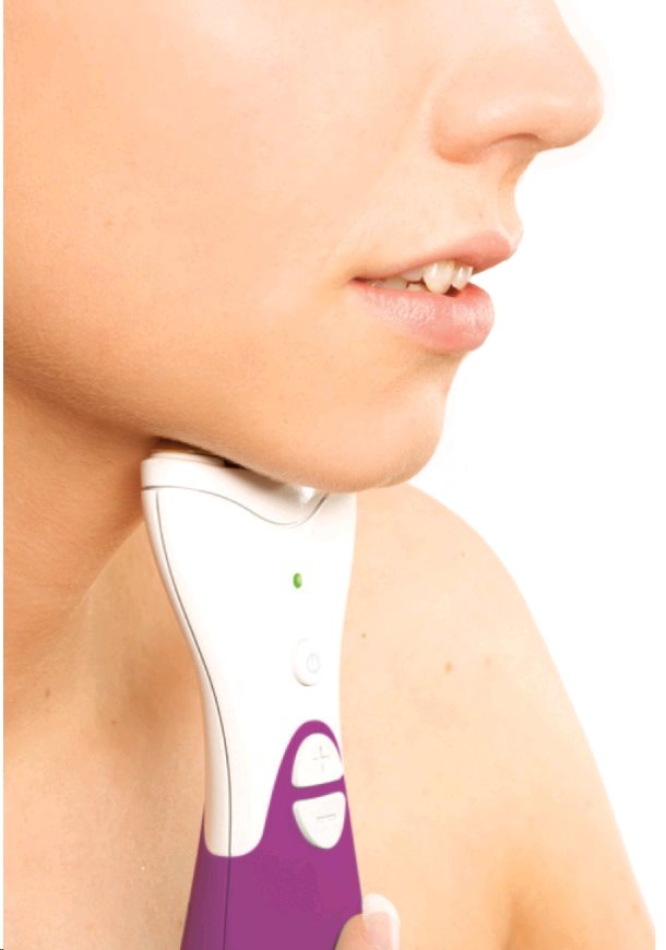 S oběma kontakty dotýkající se kůže, umístěte přístroj pod bradu. Neudělejte Adamovu bradku. Držte přístroj v pozici 60 sekund.