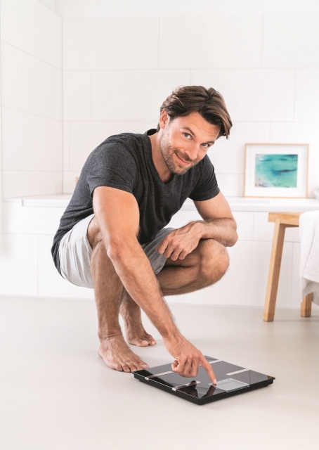 * měři: tělesnou hmotnost, svalovinu, vodu v těle, hmotnost kostí, AMR / BMR a BMI